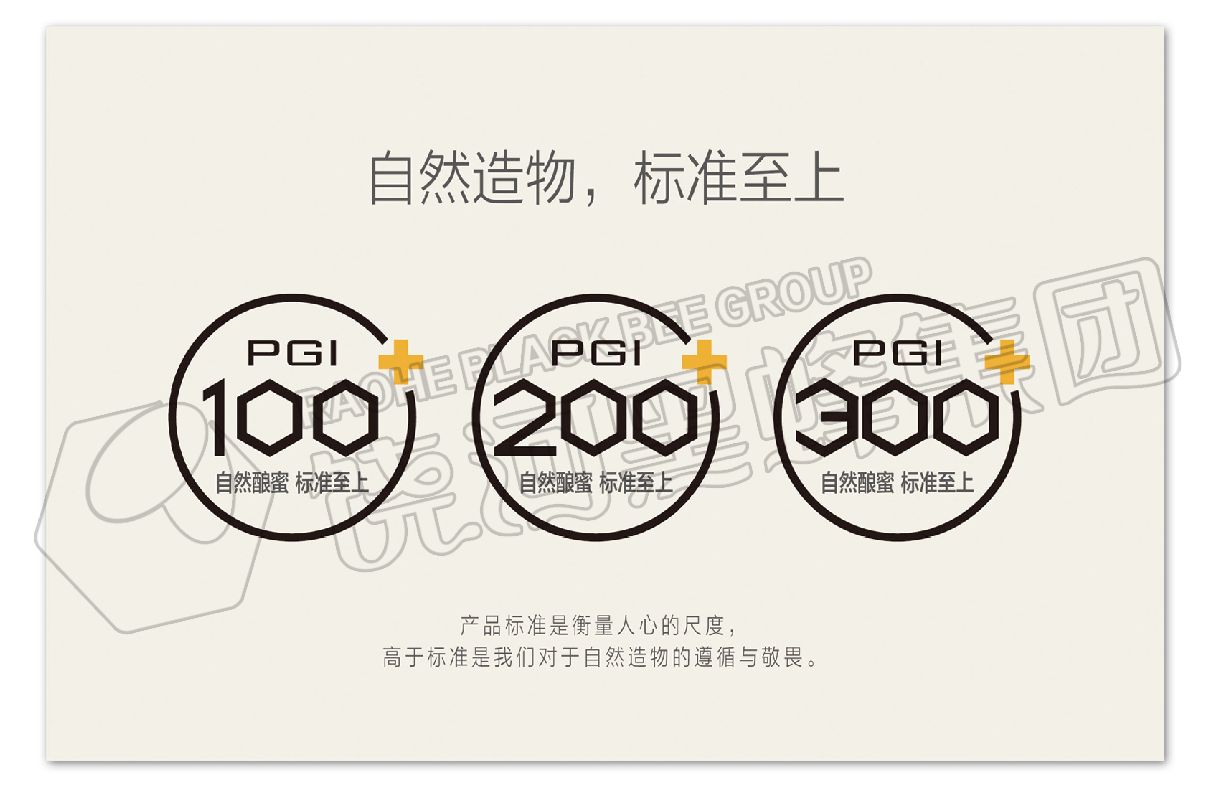 100+黑蜂自酿时间超过100小时,波美度42度;200+黑蜂自酿时间超过200小时,波美度42.5度;300+黑蜂自酿时间超过300小时,波美度高达43度。